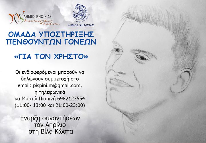 Η Κοινωνική Μέριμνα του Δήμου Κηφισιάς προχωρά στη δημιουργία ομάδας Υποστήριξης Πενθούντων Γονέων «Για τον Χρήστο» μετά από πρόταση της κας Μυρτούς Πισπινή η οποία έχει βιώσει την απώλεια.