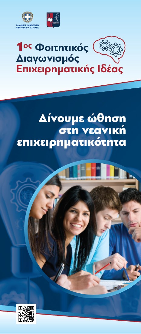 Με στόχο την ενδυνάμωση της νεανικής επιχειρηματικότητας η Περιφέρεια Αττικής σε συνεργασία με το Πανεπιστήμιο Πειραιώς εγκαινιάζουν τον 1ο Φοιτητικό Διαγωνισμό Επιχειρηματικής Ιδέας.