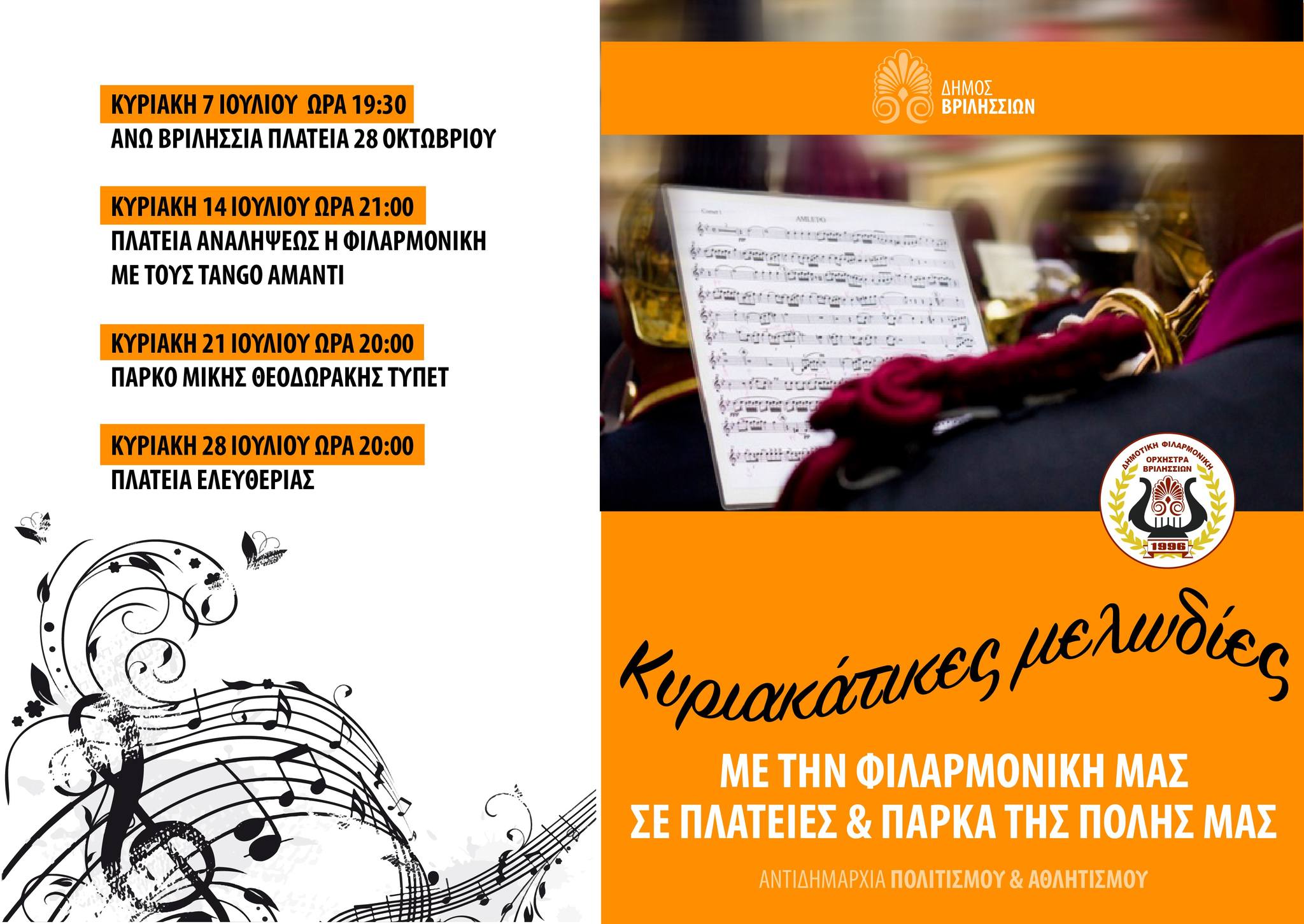 Μια σειρά ανοιχτών για το κοινό συναυλιών σε πλατείες και πάρκα των Βριλησσίων τις Κυριακές του Ιουλίου ξεκινά η Φιλαρμονική…