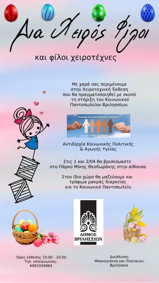 O Σύλλογος Δια χειρός Φίλοι πραγματοποιεί Χειροτεχνική Έκθεση με σκοπό την στήριξη του Κοινωνικού Παντοπωλείου του Δήμου Βριλησσίων