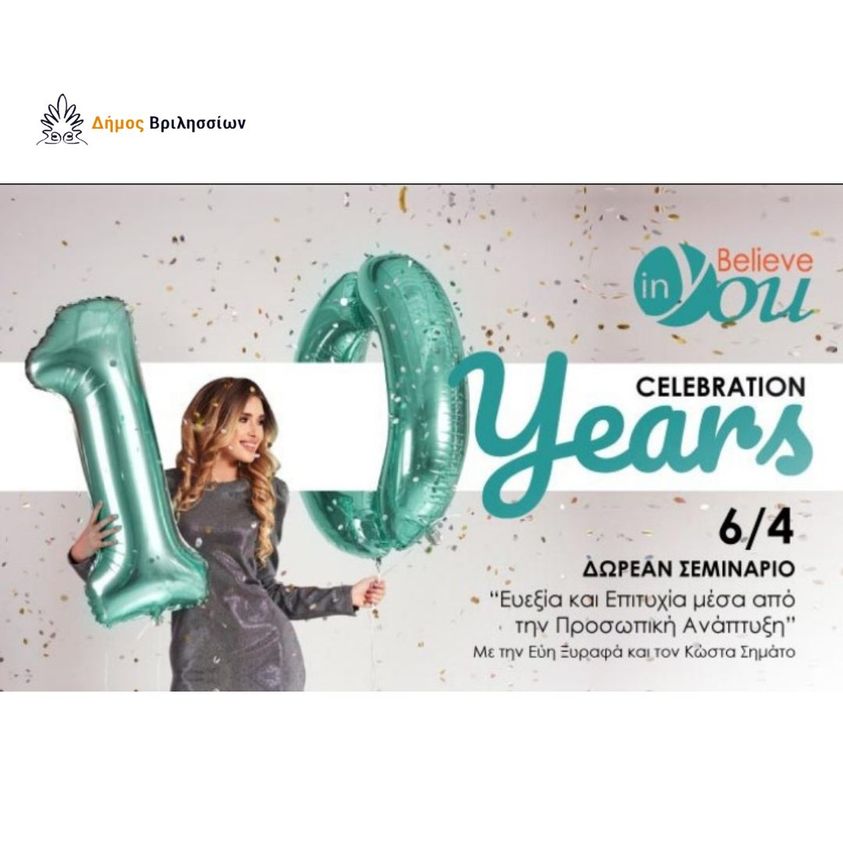Δωρεάν σεμινάριο για τα 10 χρόνια του Believe in You:“Ευεξία και Επιτυχία μέσα από την Προσωπική Ανάπτυξη”, στο πλαίσιο της διαχρονικής συνεργασίας με τον Δήμο Βριλησσίων