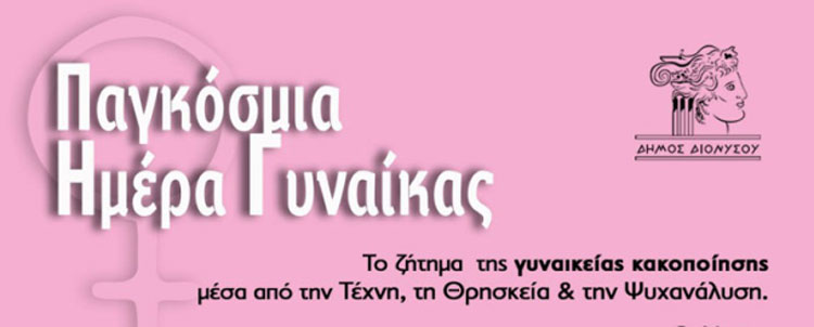 Μια πολύ ενδιαφέρουσα εκδήλωση για την Παγκόσμια Ημέρα της Γυναίκας, στον Δήμο Διονύσου την Παρασκευή 8 Μαρτίου. Ομιλίες, Προβολή ντοκιμαντέρ…