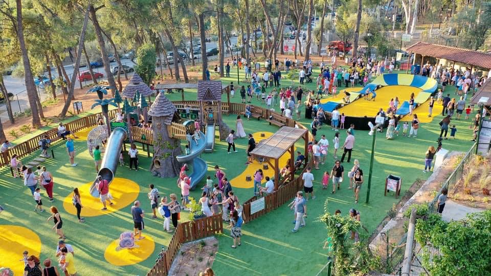 Δενδρόσπιτα, παιχνίδια του δάσους, διαδρομές με στοιχεία της φύσης, φυτεύσεις με φυτά του Υμηττού, παιδική χαρά, ξύλινα τραπεζοκαθίσματα και σημεία…