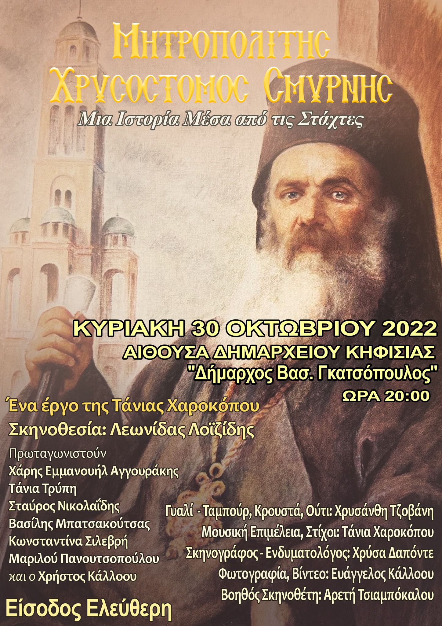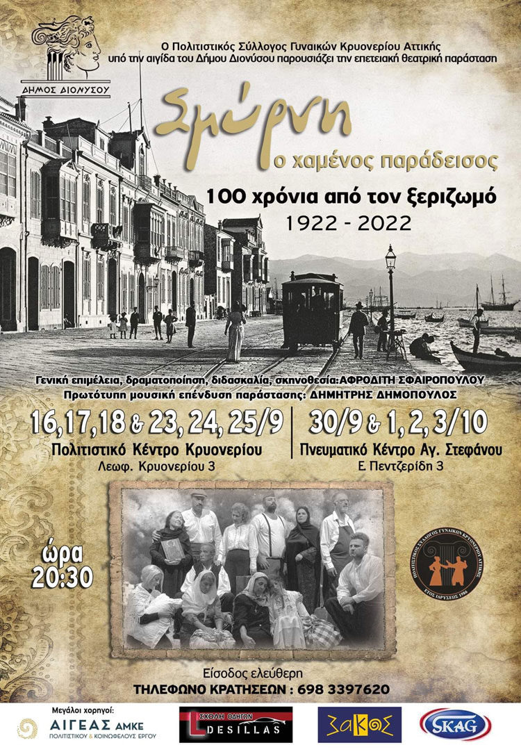 Η Επετειακή θεατρική παράσταση, “Σμύρνη, ο χαμένος παράδεισος….” 1922-2022 (100 χρόνια από τον ξεριζωμό) μετά τις επιτυχημένες παραστάσεις στο Πολιτιστικό…