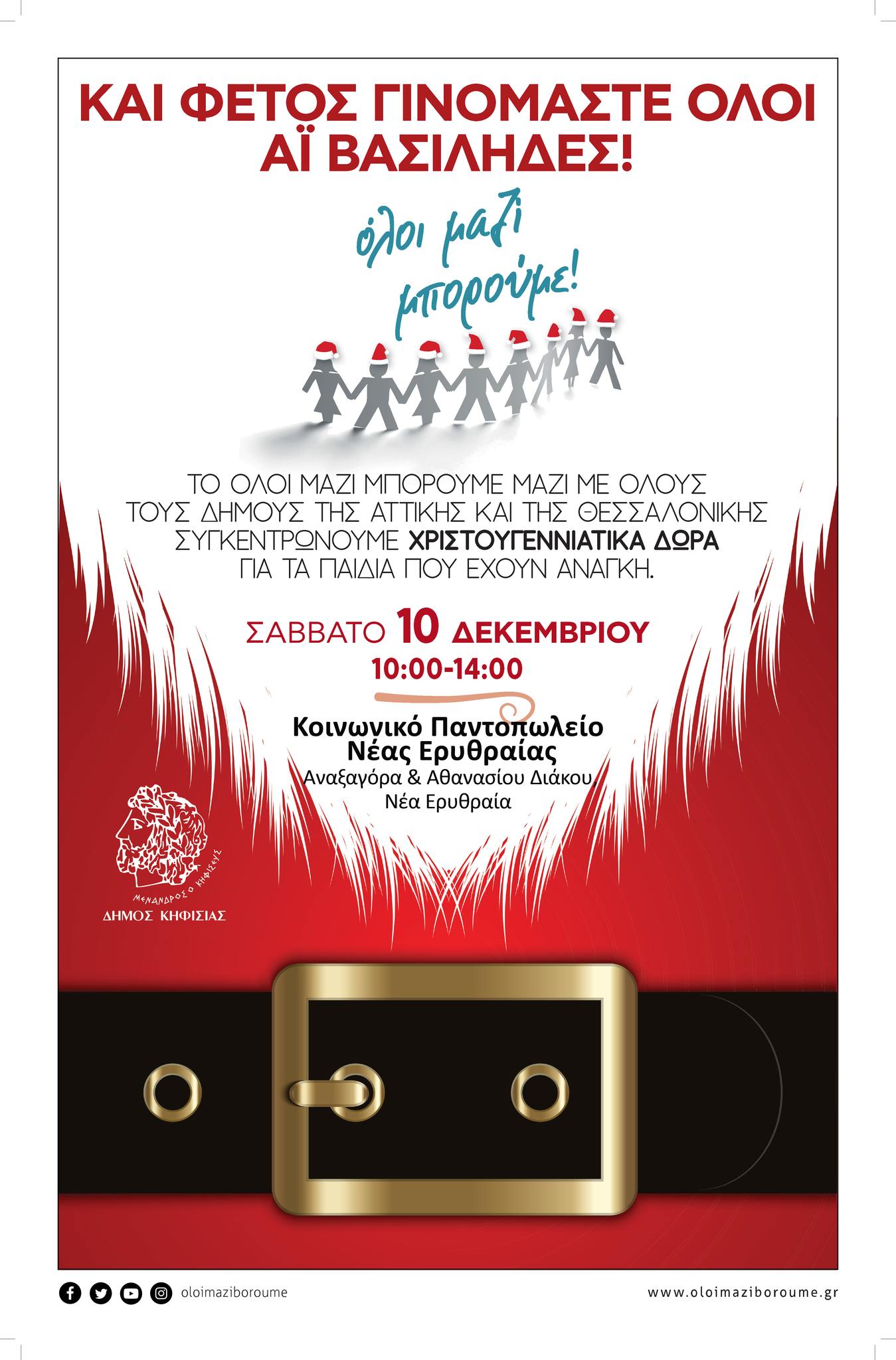 Στο Δήμο Διονύσου γινόμαστε όλοι Αϊ Βασίληδες – Οι Κοινωνικές Υπηρεσίες συγκεντρώνουν Χριστουγεννιάτικα δώρα το Σάββατο 10/12